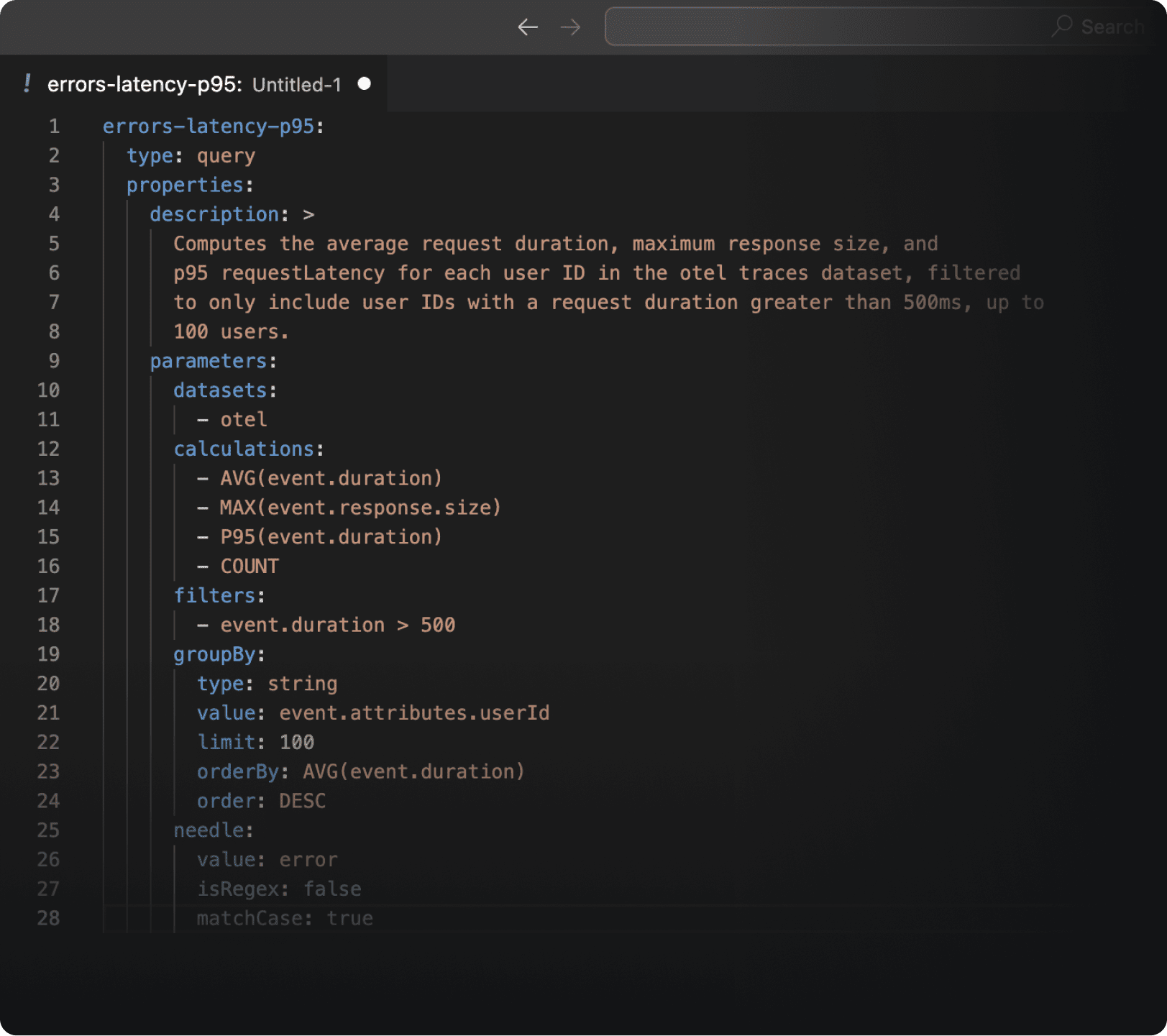 Baselime's Observability as Code integrates with popular Infrastructure as Code tools like Terraform, AWS CDK, SST, CloudFormation and the serverless framework. You don't need to learn yet another markup language